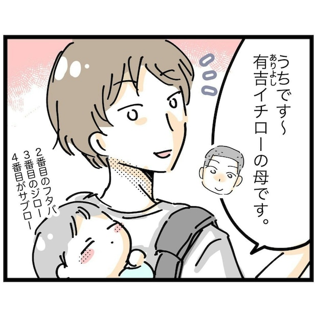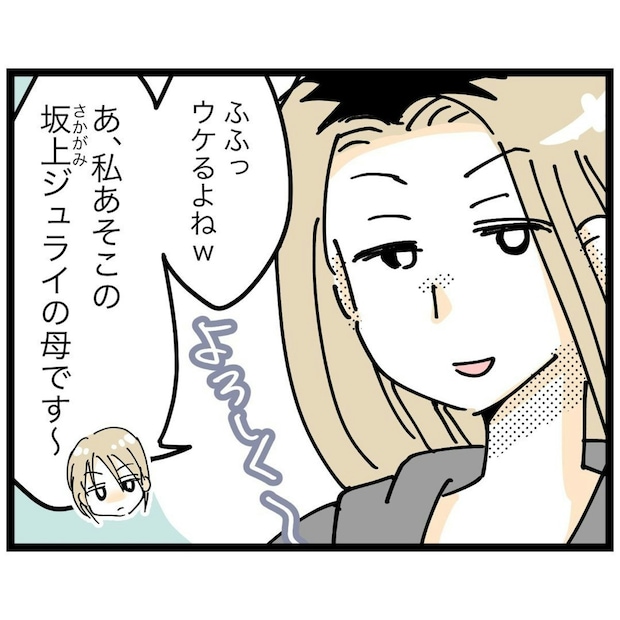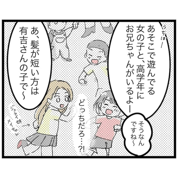坂上さんは、タクと一緒にふざけていた子のママでした。赤ちゃんを連れたショートカットのママは、有吉さん。