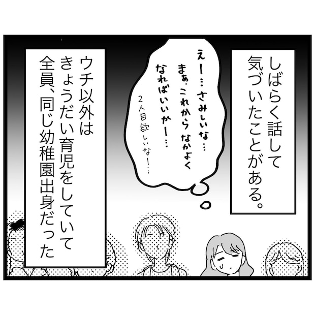 同じ学年の保護者と話すうちに、他のママたちは全員同じ幼稚園出身で、きょうだい育児をしているということが判明。