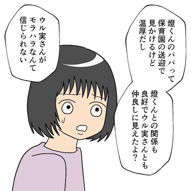 まさか、ウル実がモラハラなんて…「信じられない」という、多恵子と室世。ママ友たちの目からは、ウル実一家の関係は良好に見えていました。