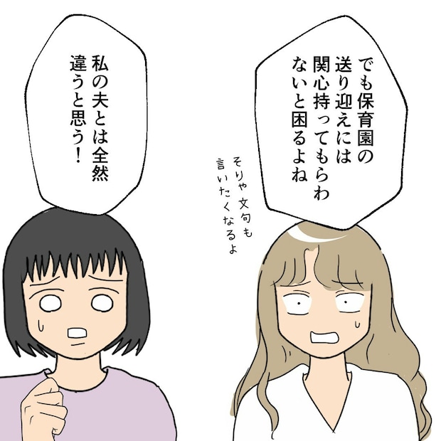漫画の中の多恵子も、ワンオペ家事育児に奮闘しています。夫・狐生は「家事育児は妻の仕事」と決めつけ、手は動かさないのに「俺が正してやっている」と、口だけは出すモラハラ夫。それでは、口出しされなかったらいいのかというと、そうでもありません。関心がなさ過ぎて、口出しすらしない夫・亜馬斗に、ウル実が抱く不満も同じくらい深刻なのです。