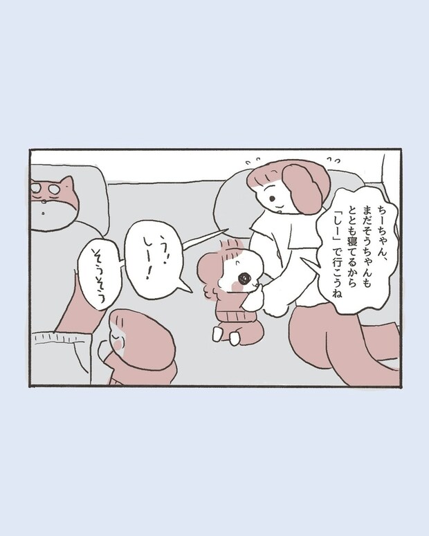 ママの言うことを聞いて「しー!」とした娘、お兄ちゃんに向かって大きな声を出してしまいました…。なにはともあれ、朝から元気で何よりですね。