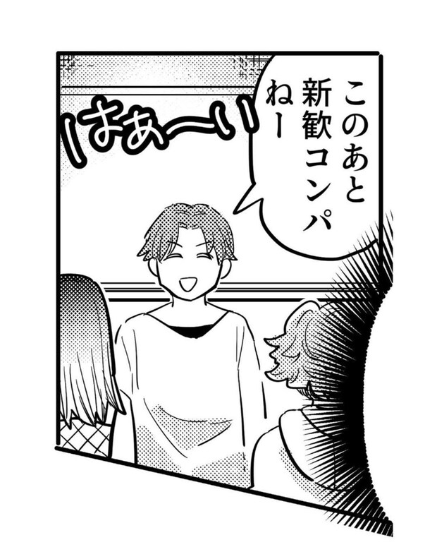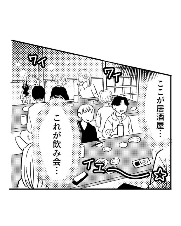 陽キャたちに囲まれながらの自己紹介を何とか乗り切った後は、新歓コンパが始まるようです。佐久間さんの試練は、まだまだ続きます。