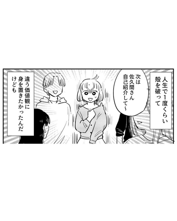 新たな価値観を求めてインカレのテニスサークルに入部した佐久間さんでしたが、周りのノリになかなか馴染めません。当たり前のようにニコニコ笑い、フレンドリーに距離を縮める陽キャたちに圧倒されてしまったのです。