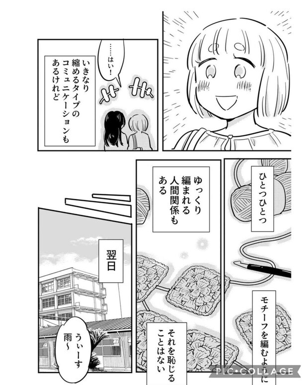 今作の主人公は、呼び捨てで呼び合うサークル仲間との時間より、苗字に「さん」を付けて呼び合う手芸仲間と過ごす穏やかな空気に安らぎを感じていました。