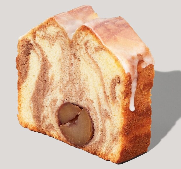 マーブル状に焼き上げた栗の味わいを楽しめるパウンドケーキ。ケーキの下部には、ごろっとした栗の甘露煮が入っている。価格は税込390円。