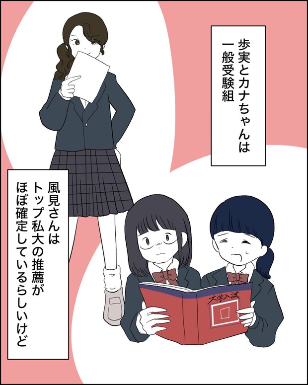 歩実とカナちゃんは一般受験組、風見さんはトップ私大の推薦がほぼ確定しているらしいけど・・。どうか、歩実の邪魔をしませんように。と強くお願いしました。