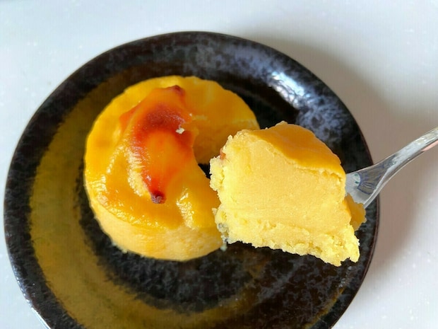 しかし、ただ大きいだけではありません。飼料からこだわった「スイーツエッグ」を使用しているため、卵のコクと風味がしっかり感じられる、昔ながらの本格的な硬めプリンに仕上がっていますよ♪
