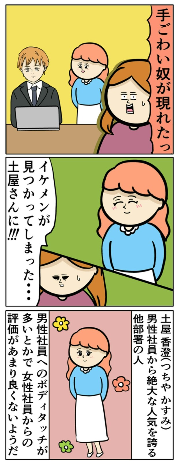 ひとりのイケメン社員をめぐり、かなり熾烈な争いになりそうですね…。あなたの身近にもいるようなキャラクターが描かれており、共感ポイント満載の作品です。