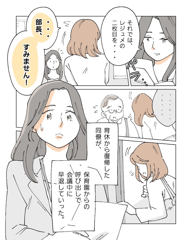 部門の定例会議中「それではレジュメの2枚目を・・・」といつものように会議を進めていると、「部長、すみません!」と突然席を立つ同僚。慌てて部長のもとへ駆け寄り、何やら事情を説明すると、そのまま足早に会議室を後にします。どうやら保育園から急な呼び出しがあり、すぐに迎えに向かわなければならなかったようです。