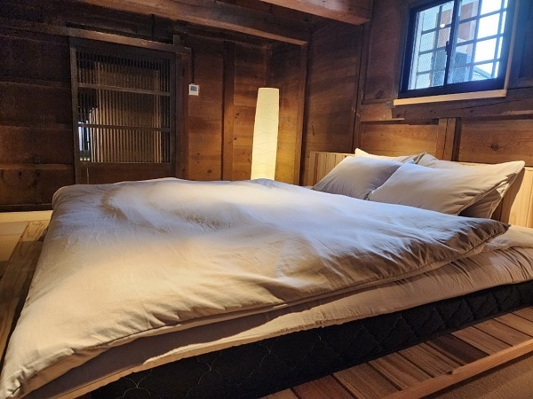 「いにしえの宿おへそ」は1日1組限定、2階建て一棟貸切りタイプ。料金は大人4名の母屋プランが45,000円~、定員12名で1名追加ごとに+10,000円〜。営業期間は4月中旬~11月下旬、豪雪地帯のため、冬季は休業となる。チェックインは15:00で、チェックアウトは10:00、予約はHPで受け付けている。