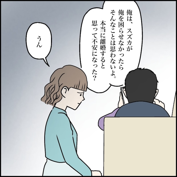 「俺は、スズカが俺を困らせなかったらそんなことは思わないよ。本当に離婚すると思って不安になった?」タカシにそう言われ、「うん」と答えると、