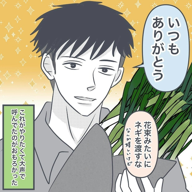 パパの気持ちがこもった花束…かと思いきや青々としたネギ、そしてイケメンなパパ、なんともミスマッチな光景に思わず笑ってしまいますね。ママへの感謝の気持ちをこんな風に表現してくれるパパ、最高です。
