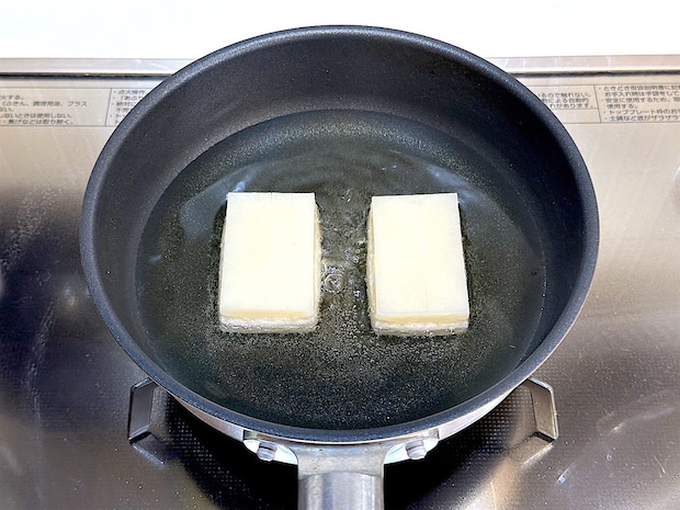 2. 切り餅は170度の油で素揚げする。