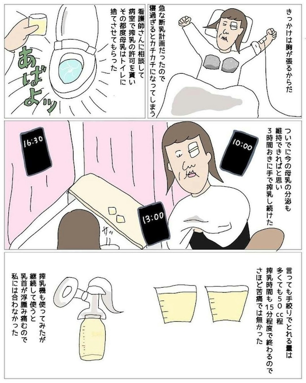 3時間おきに手で搾乳し、母乳の分泌を止めないようにしたのです。入院中で時間があったとはいえ、定期的な搾乳を続けるのは大変だったことでしょう。