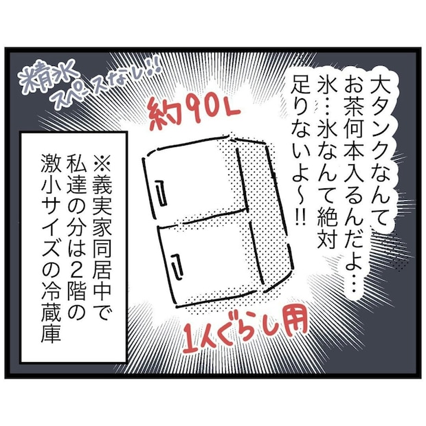 さらに、もっつんさん宅の冷蔵庫は激小サイズ。氷を用意するのも難しそうです。