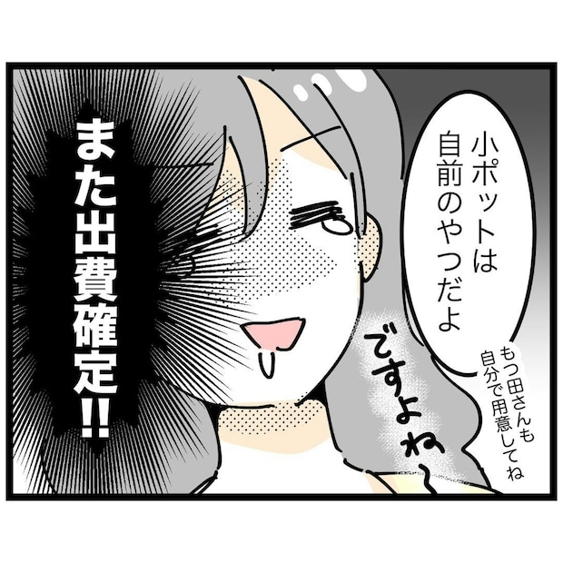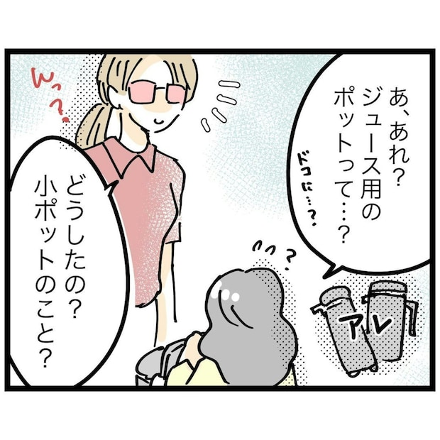 いよいよもっつんさんに、お茶当番がまわってきました。そこでもっつんさんは、ジュース用の小ポットがないことに気が付きますが…。