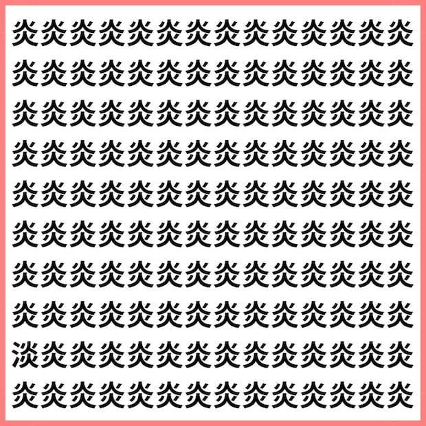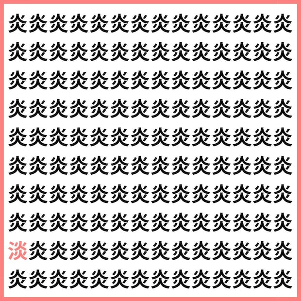 たくさんの「炎」の中に、1文字だけ違う漢字が混ざっています。