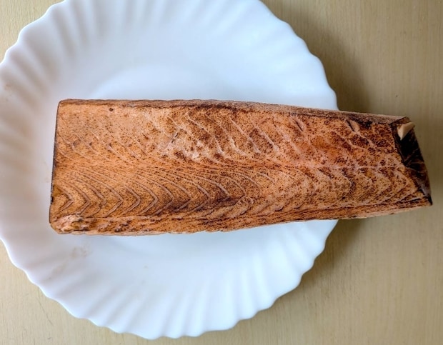 冷凍のまま開けてみると、ご覧の通り、切れ目と焦げ目がよく分かりますね。