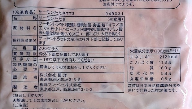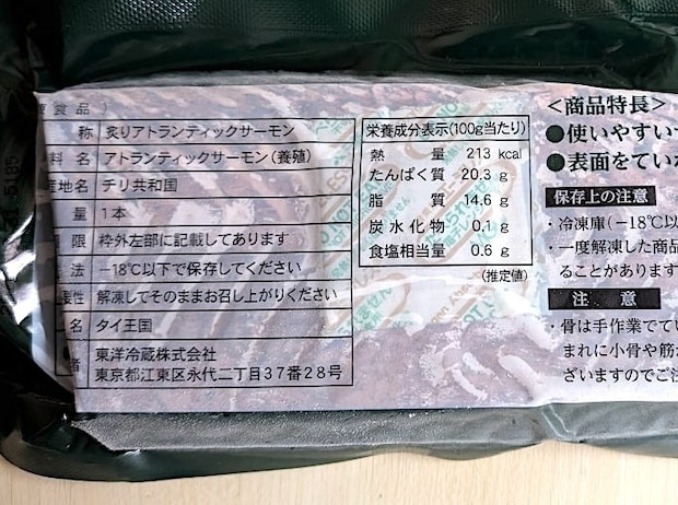 裏面表示には、チリ産のアトランティックサーモンと記されています。