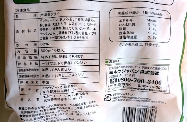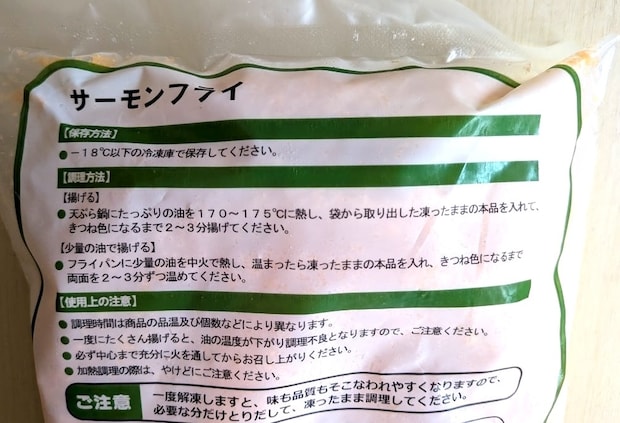 3つ目は、シンプルなパッケージが業務スーパーらしい「サーモンフライ」。