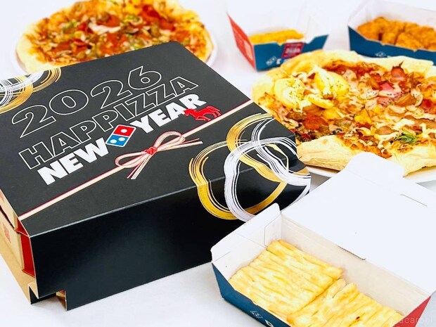 2026年1月1日(木・祝)より、ドミノ・ピザから「ドミノのお正月セット」が期間限定で登場。お正月にふさわしい「お重型ボックス」で届く、特別感たっぷりなセットが発売されます。