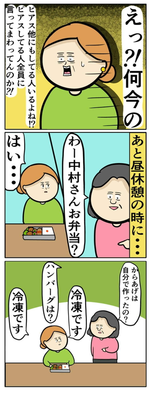 中村さんがピアスをつけて出社した日、お局さんから「職場なのに色気づいちゃって」と嫌味を言われてしまいます…。