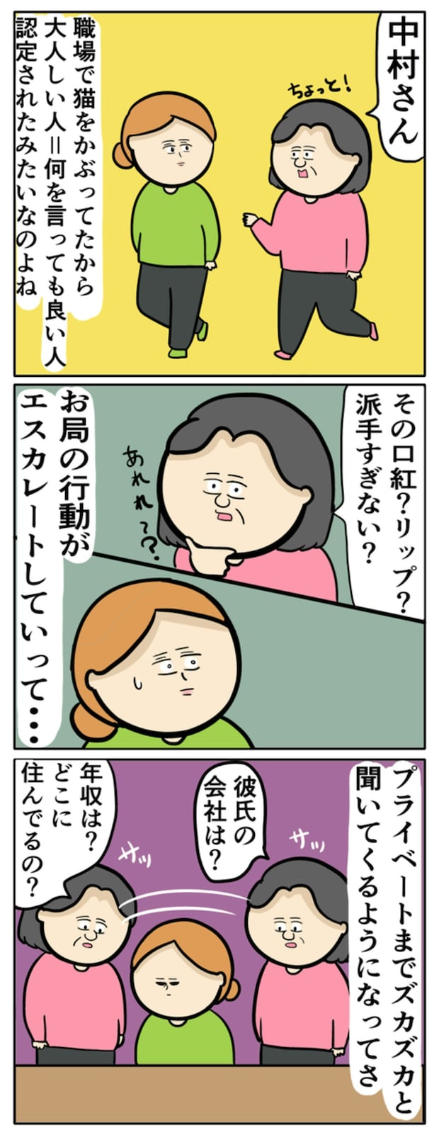 チクチク攻撃してくるお局さんのほうが一枚上手でした。本作では、身近にもいそうなキャラクターが描かれており、共感ポイント満載です。