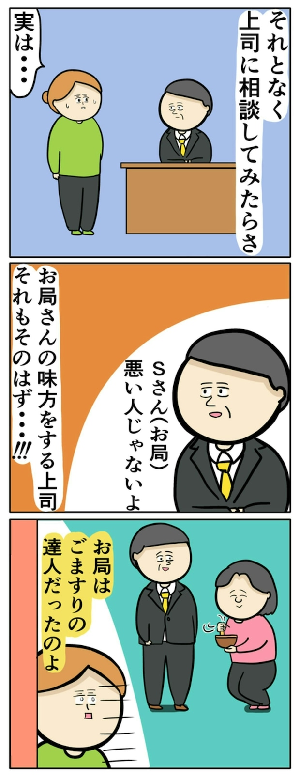 プライベートにずかずかと入り込んでくる人、厄介ですね。小言もエスカレートしていったため、中村さんは上司に相談。しかし、お局が上司にうまく取り入っていたようで、直訴は失敗に終わります…。