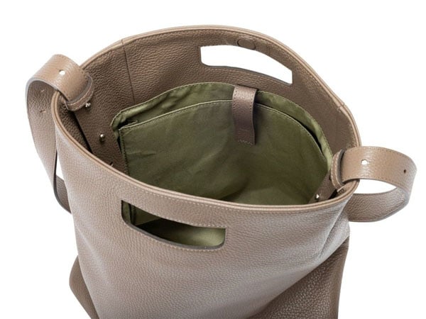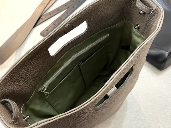 使いやすい必要十分な内装設計で、開口部はマグネットを採用。体にフィットする質感を重視し、イタリアで加工されたソフトな型押しシュリンクの牛革を使用している。