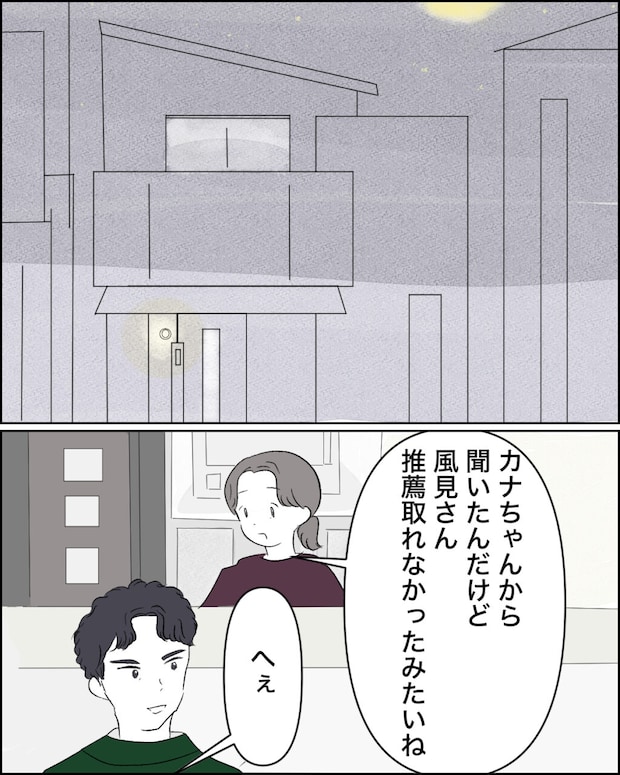 夜になって歩実が寝た後、ユカちゃんから聞いた風間さんの指定公推薦取り消しの話を、夫博之にも伝えました。「へぇ」と短く返事をした博之の表情は、全てわかっていると語っていました。