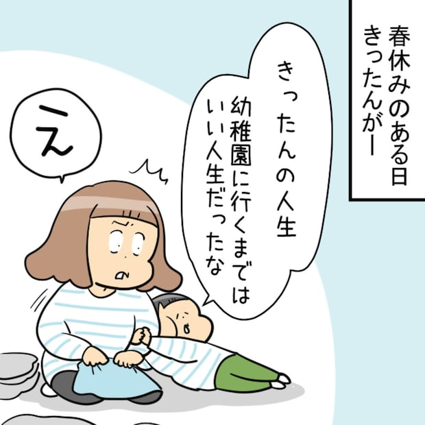 幼稚園に行っている間は、ママとは離れ離れ。一緒にいられる時間を「いい人生」だと思っている息子の気持ち、なんて健気なんでしょうか。こんなことを言われてうれしいのに、なんだか切なくなってしまいますね。