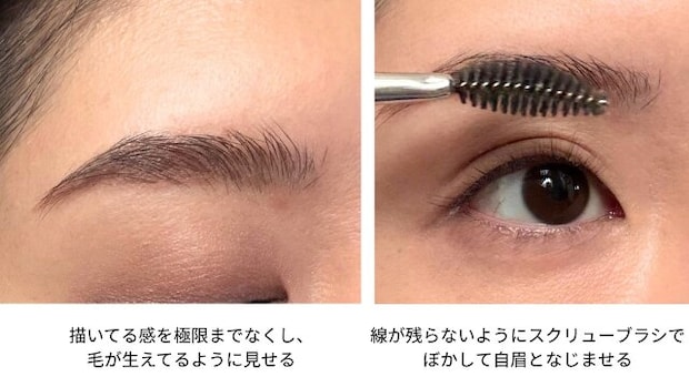 ぼかしすぎたかな?と思うくらい自然な質感になるように、丁寧に調節しましょう。眉マスカラを塗るときも、量の付けすぎに注意します。
