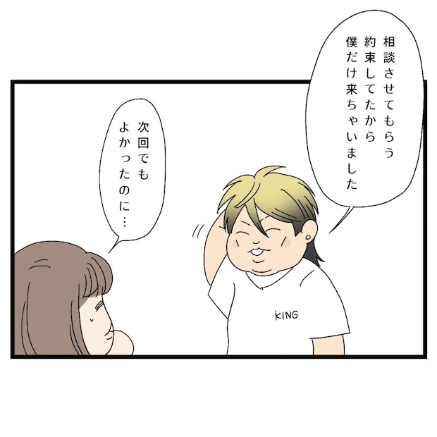 子どもたちを公園で遊ばせてからカフェに移動する約束だったのに、当日待ち合わせ場所にやってきたのは信也さんひとりだけ。理由を聞くと「コウキがぐずったから自分だけ来た」と言います。ぐずる子どもを家に残してまで、どうしても相談に乗ってもらう必要があったのでしょうか。ママ友たちも信也さんの自分本位な行動に、どこか違和感を覚え始めているようですね。
