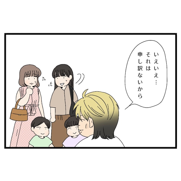 しかし信也さんは「いえいえ、それは申し訳ないから」と首を振り、ママ友たちを気遣います。その様子を見たママ友たちは言葉を選びかねたまま、困ったようにアイコンタクトを取りました。