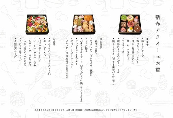 「アクイーユお重」の内容は2~3名向けで、特別価格の8,800円(税込)。販売は1日10セット限定だ。