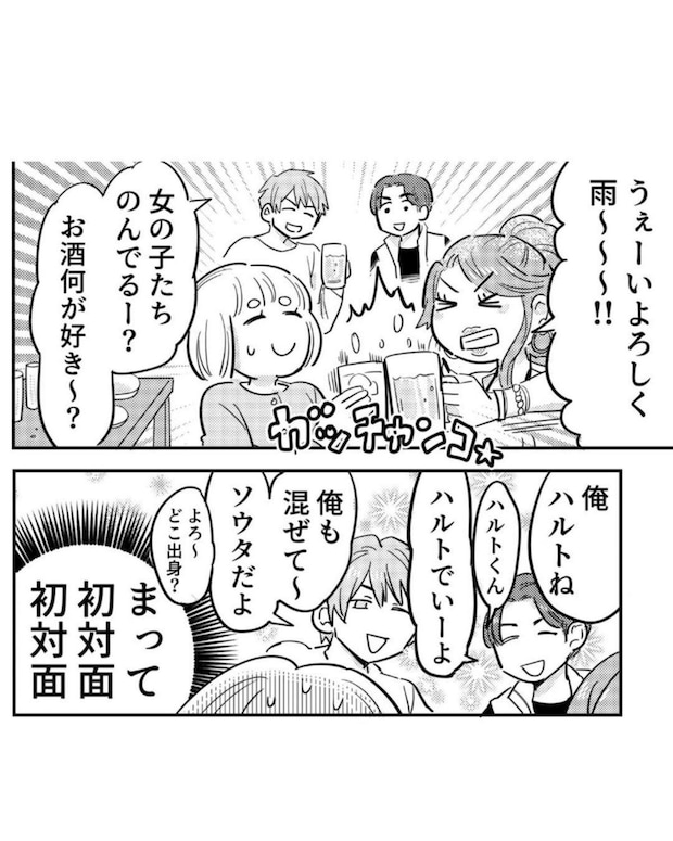 次から次へとジョッキ片手に近づいてくる陽キャにタジタジの佐久間さん。「これは本当に初対面の距離?」と戸惑いを隠せません。