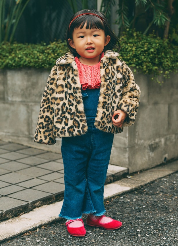 レオパード柄のファーコートでパッと主役級の華やかさを放つ、いっちゃん。そこに、カジュアルなインディゴデニムのサロペットを合わせることで、エッジィなのに親しみやすいバランスに♡ さらに、足元は赤のメリージェーンでスイートなムードをオン。ワイルドさと可愛さを兼ね備えたおしゃれ上級者。