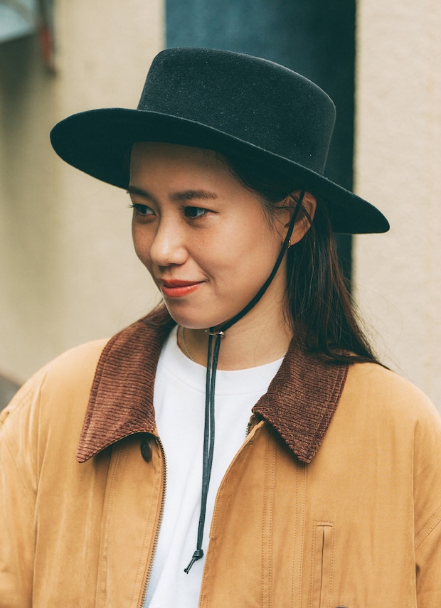 『キジマ タカユキ』のブラックハットをクローズアップ! 上質なフェルト素材とシンプルなデザインが、コーデ全体の引き締め役に。