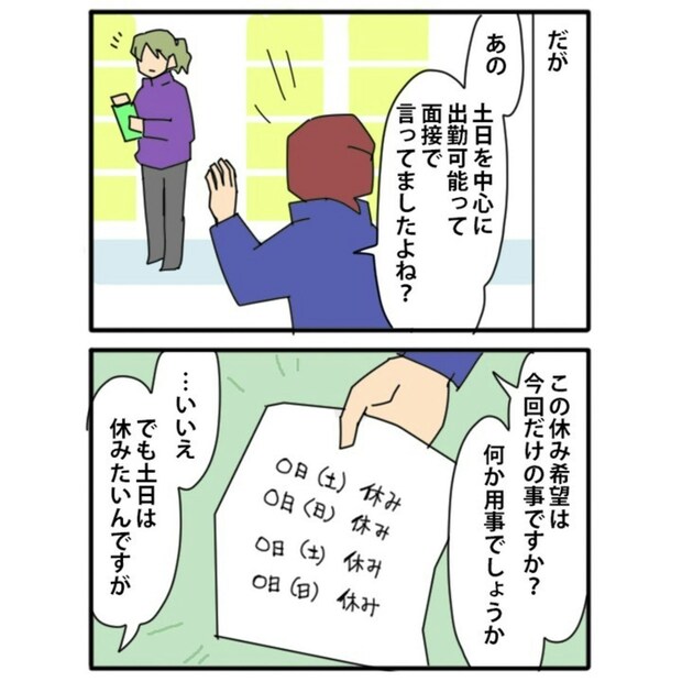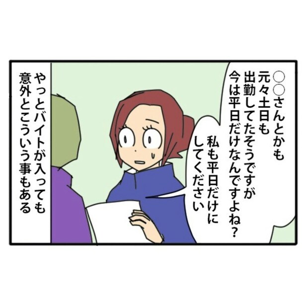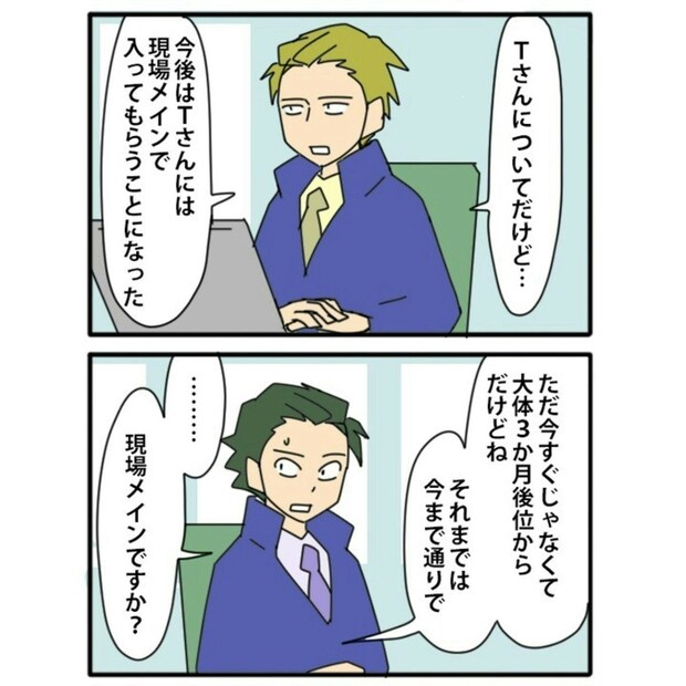 中途社員・Tさんの勝手な言動により、現場が混乱。元々、アルバイトの中では「平日メイン出勤」と「土日も出勤」組とで対立があり、Tさんのせいでさらに悪化。現場の不満が高まり「現場には社員が常にいるべき」という要望が出始めます。