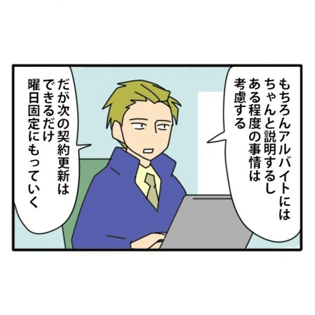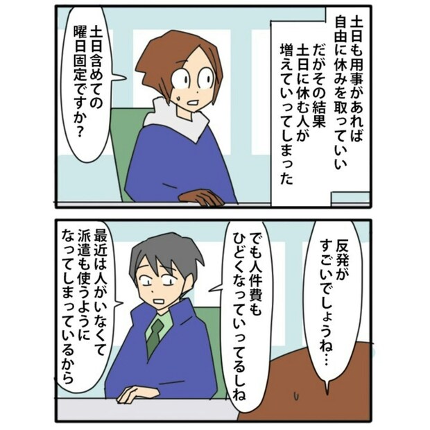 そこで今回、「曜日固定制に変える」という思い切った決断に踏み切りました。会社として、収支を考えるのは当然のこと。そして課長は、Tさんのためにもなると考えたのです。