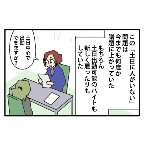 今まで土日に人手が足りず、シフトに偏りが出てしまっていました。その結果、アルバイト同士の不満につながり、人間関係悪化の原因にもなっていました。