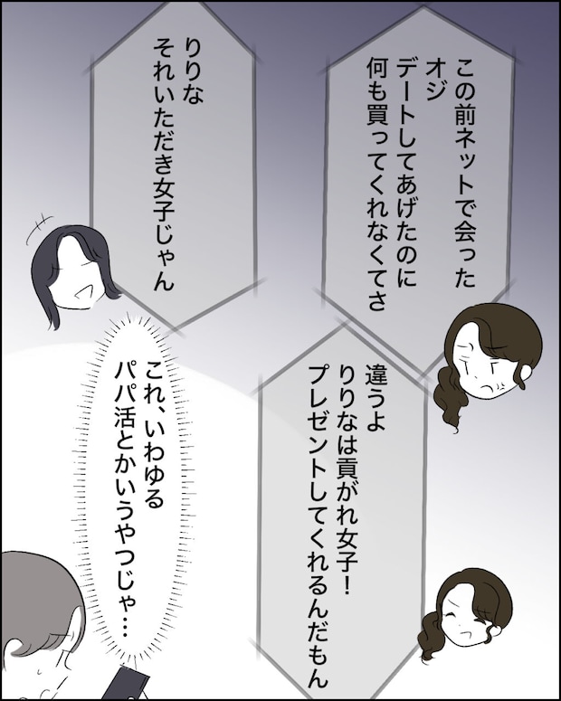 さらに、私は優等生として有名なはずの風間さんの素行の悪さに唖然としました。校内報でも素晴らしい生徒として紹介されるほどの風間さんですが、裏ではネットを通じて知り合った男性とデートをし、物を買ってもらうといういわゆるパパ活をしていたのですから。