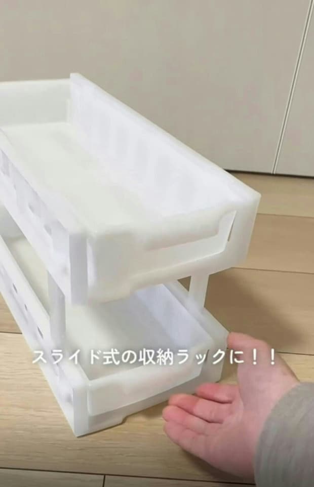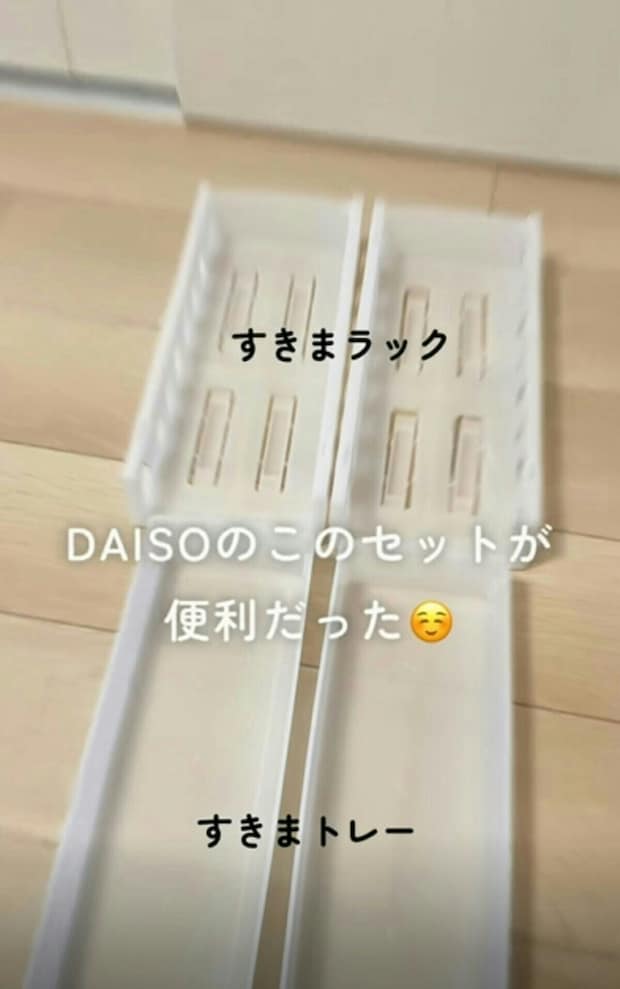 用意するアイテムは、ダイソーで販売されている、「スッキリ収納すきまトレー」と「スッキリ収納すきまラック」です。