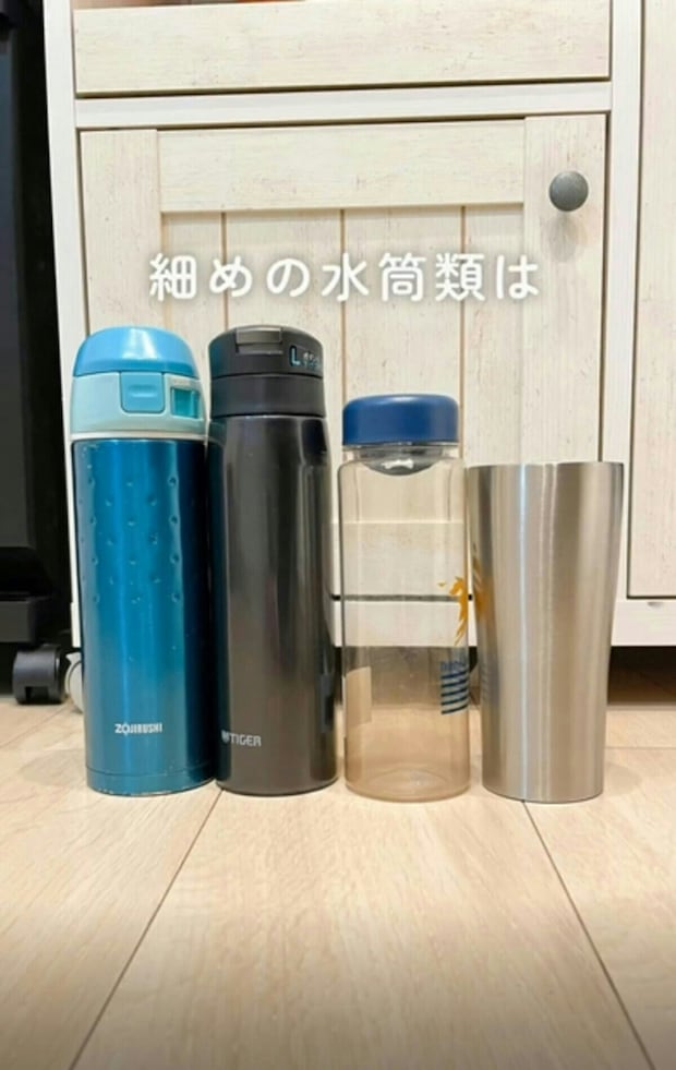 細めの水筒は、ドミノ倒しになってしまいがちですよね。