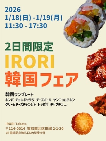 2025年11月18日(火)にオープンした東京・北区田端の和ダイニング「IRORI Tabata」は、今年1月18日(日)と19日(月)の2日間限定で、彩り豊かな韓国料理を楽しめる店内イベント「韓国フェア」を開催する。