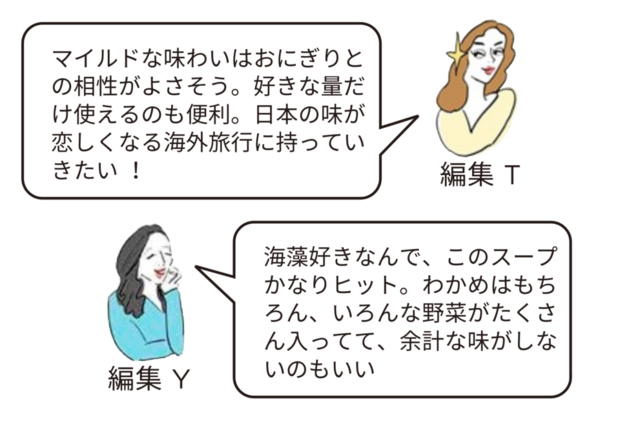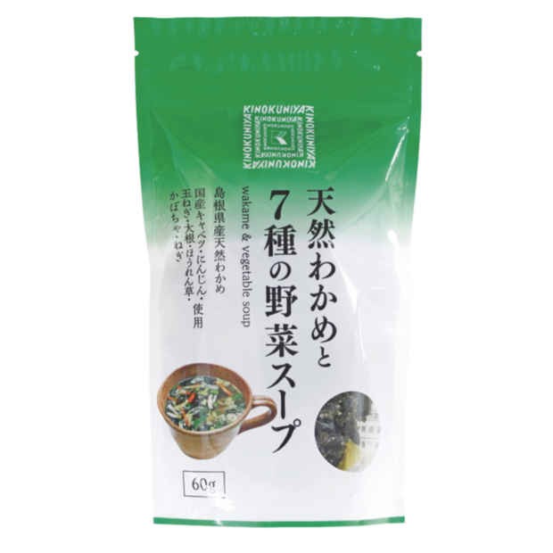 島根県産の天然わかめに、国産のキャベツ、にんじん、玉ねぎ、大根などを加えた乾燥タイプの野菜スープ。優しい甘みが特徴。60g¥594(紀ノ国屋)
