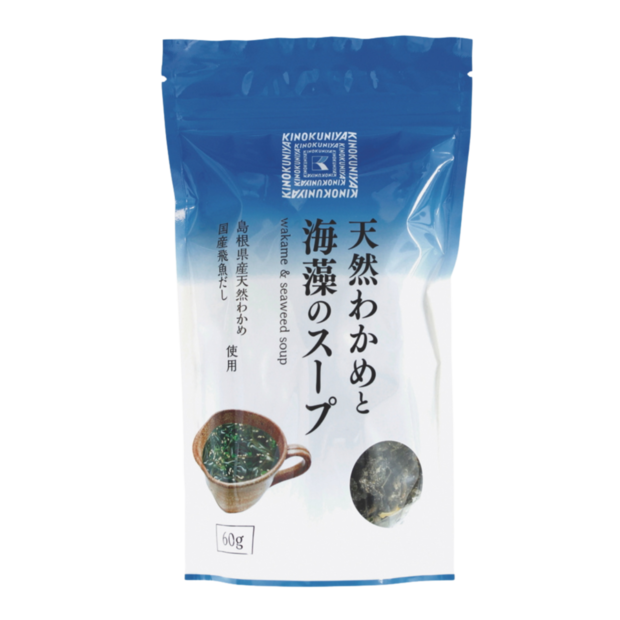 島根県産のわかめと茎わかめ、北海道産のかごめ昆布など、海藻をたっぷりと使用したスープ。 乾燥タイプなので好きな分だけいただける。60g¥594(紀ノ国屋)