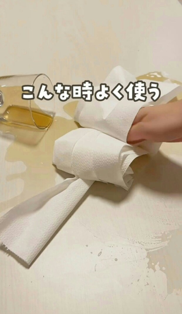 子どもがお茶をこぼしたとき、おみそ汁をこぼしたとき、子育てをしていると1日に何回も経験することもあるこの場面、パパッとふけるトイレットペーパーも便利ですよね。