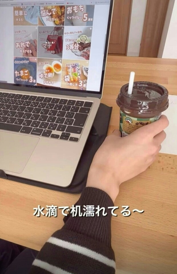 しかし、飲みかけのカップを置いておくと、水滴でデスクがぬれてしまって嫌な気持ちになることも。そこで、知っておくと便利な、まにちゃん|調理の手間とイライラを吹き飛ばすさんのチルドカップ飲料のふたに関する裏技です。早速見ていきましょう。