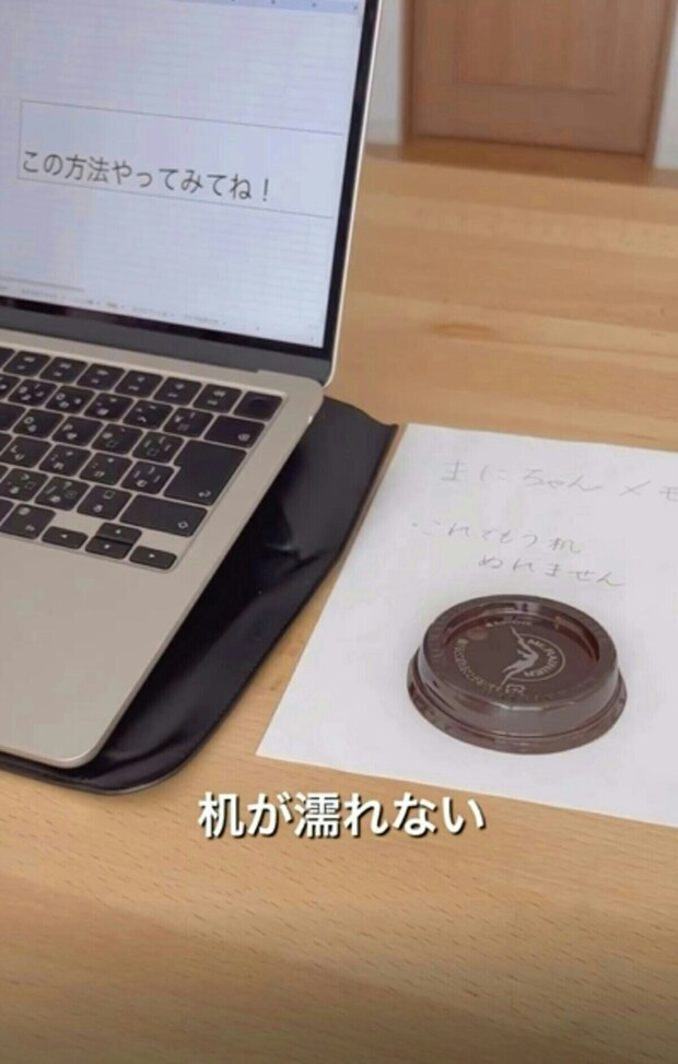 この方法を知っていれば、会社ではもちろん、在宅ワークをするときも、外出先でも、デスク周りをぬらして書類をダメにしてしまう心配も要りませんね。